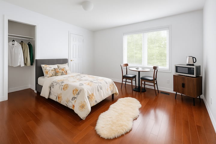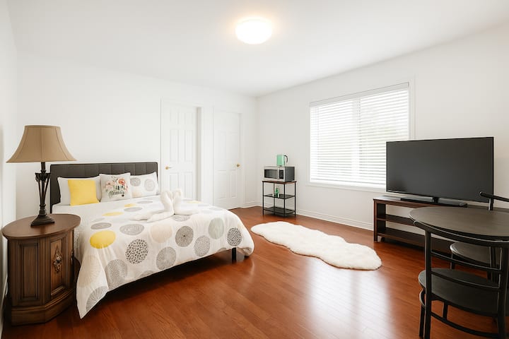 ค้นพบที่พักผ่อนอันเงียบสงบของคุณในมาร์คแฮม! ห้องมาสเตอร์สวีทส่วนตัวที่สว่างนี้มีเตียงควีนไซส์ ห้องน้ำในตัว และสมาร์ททีวี เพลิดเพลินกับห้องครัวส่วนรวม สวนหลังบ้าน Wi-Fi เร็ว และที่จอดรถฟรี