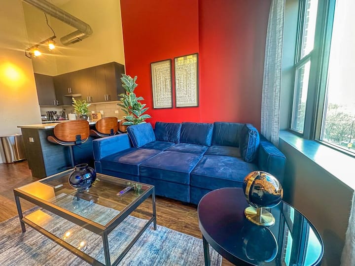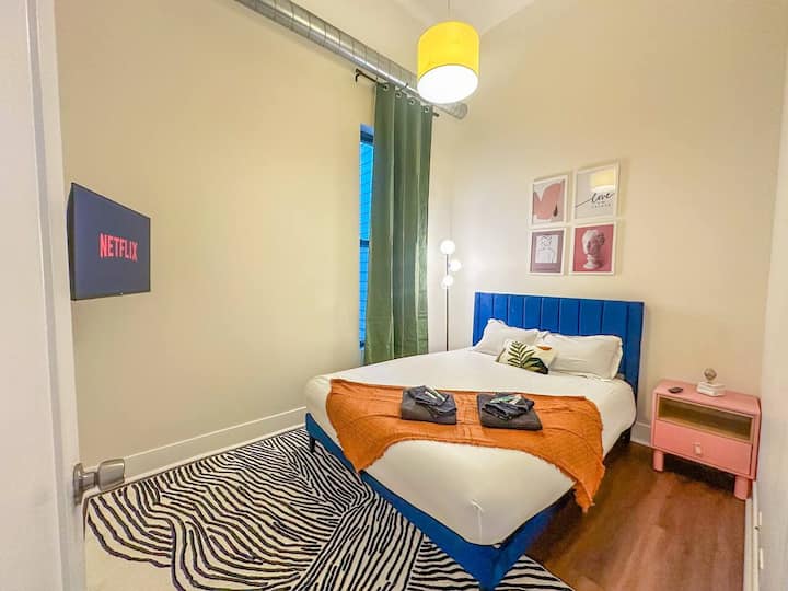 อพาร์ทเมนท์สไตล์โมเดิร์นแห่งนี้ผสมผสานพลังงานในเมืองเข้ากับความสะดวกสบายเหมือนอยู่บ้านมีเพดานสูงการตกแต่งที่มีสไตล์และหน้าต่างบานใหญ่ที่เติมเต็มพื้นที่ด้วยแสงธรรมชาติ ทุกรายละเอียดได้รับการออกแบบมาเพื่อยกระดับการเข้าพักของคุณตั้งแต่ผ้าปูที่นอนระดับพรีเมียมไปจนถึงอินเทอร์เน็ตความเร็วสูงและสมาร์ททีวี Roku ในทุกห้อง