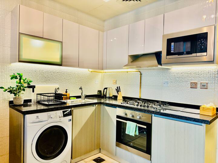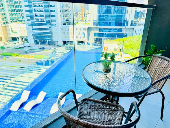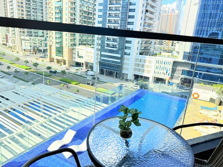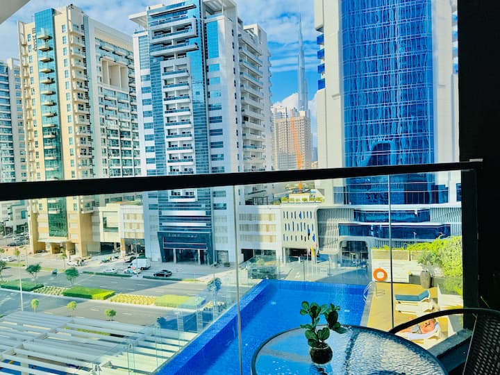 สตูดิโอหรูหราในตัวเมืองพร้อมสระว่ายน้ำและวิว Burj