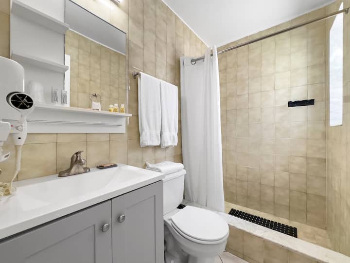 ห้องน้ำส่วนตัวมีฝักบัวอาบน้ำที่สะอาดและทันสมัย พร้อมแชมพู ครีมนวดผม และสบู่อาบน้ำขนาดเดินทาง นอกจากนี้ยังมีผ้าปูเตียงสะอาด ผ้าเช็ดตัวนุ่มๆ และผ้าเช็ดตัวชายหาดพร้อมให้คุณใช้ ทำให้การเข้าพักของคุณง่ายดาย สบาย และสะดวกสบายตั้งแต่คุณมาถึง