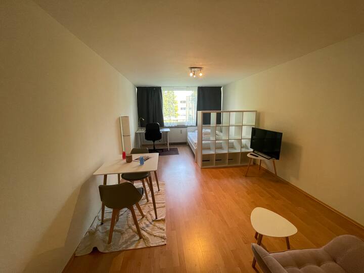 ทำเลใจกลางเมืองที่มีการเชื่อมต่อที่ดีมาก: S-Bahn ซูเปอร์มาร์เก็ตและร้านอาหารอยู่ในระยะเดินถึงได้ มีที่จอดรถกลางแจ้งที่เปิดโล่งอยู่ข้างบ้าน