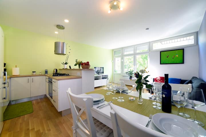 อพาร์ทเมนท์ใจกลางเมืองที่เงียบสงบและทันสมัย