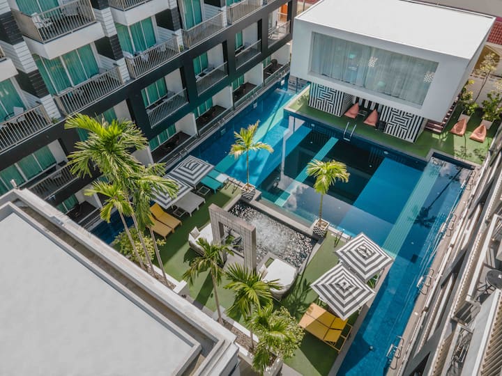นี่เป็นหนึ่งในที่พักไม่กี่แห่งของย่านนี้ที่มีสระว่ายน้ำ