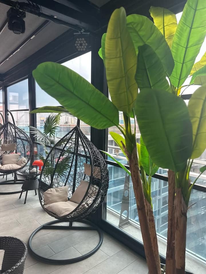 นี่เป็นหนึ่งในที่พักไม่กี่แห่งของย่านนี้ที่มีสระว่ายน้ำ