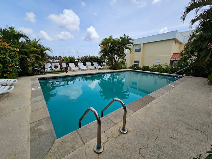 นี่เป็นหนึ่งในที่พักไม่กี่แห่งของย่านนี้ที่มีสระว่ายน้ำ