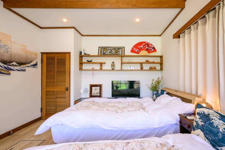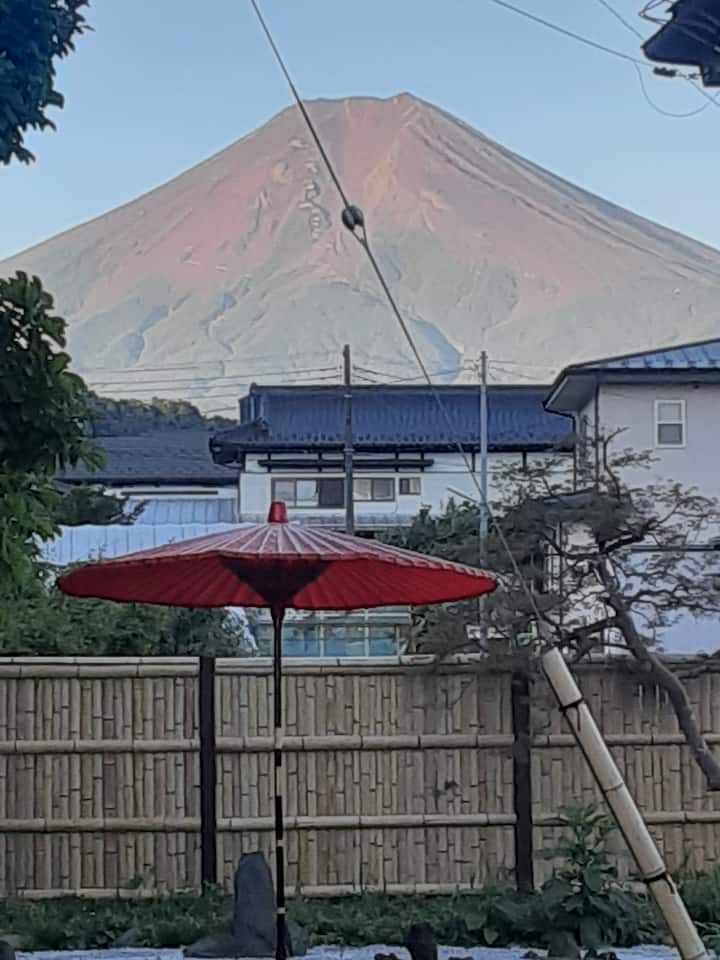 ความพิเศษของที่พัก: ภูเขาไฟฟูจิและภูมิทัศน์แห้งแล้ง รั้วไม้ไผ่