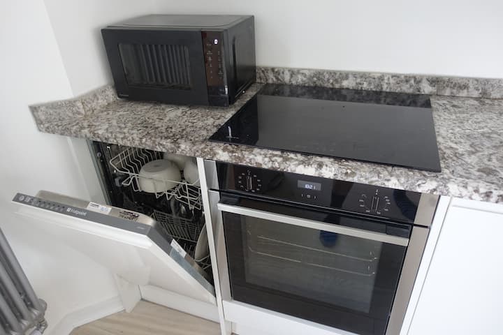 ห้องครัวมีอุปกรณ์ครบครันพร้อมเครื่องใช้ไฟฟ้าที่ทันสมัยและมีอุปกรณ์ทำอาหารทั้งหมดที่คุณต้องการเมื่อเตรียมอาหารว่างอย่างรวดเร็วหรืออาหารมื้อเย็นของคุณ