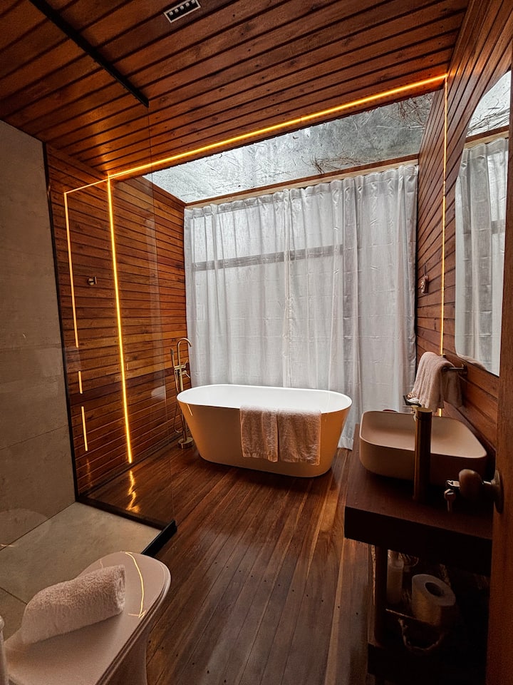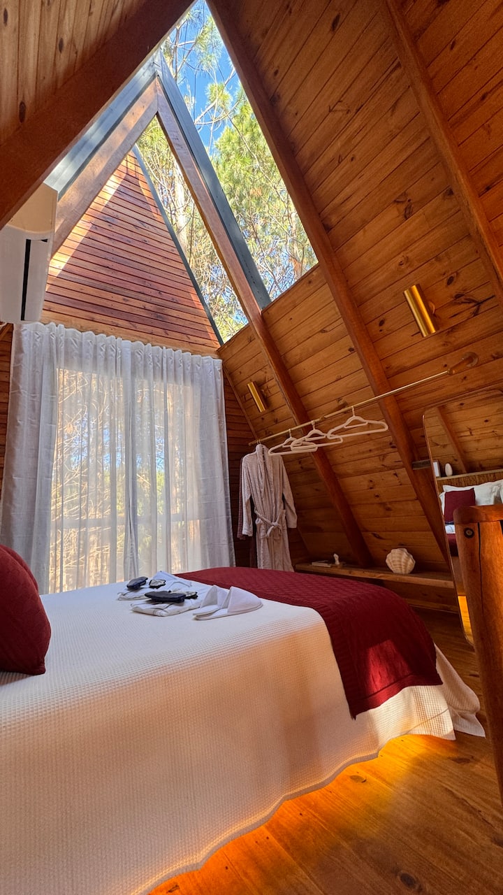 เคบินกัวย์กูรู – กระท่อมรูปตัวเอแบบโรแมนติกในป่า