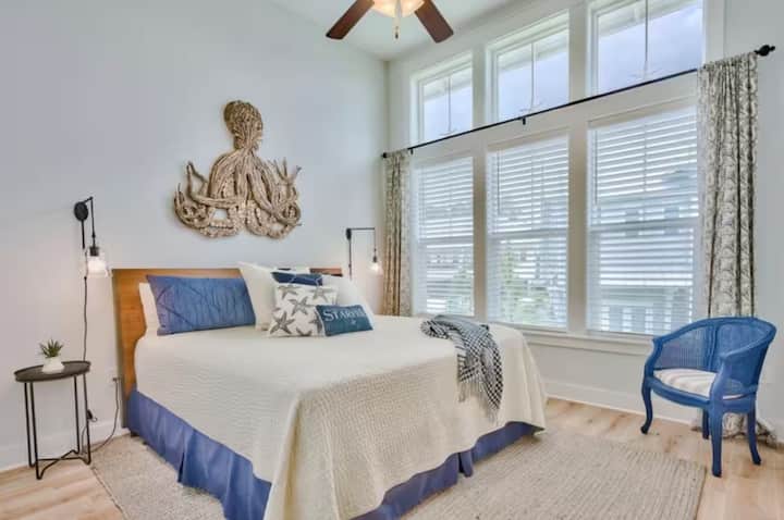 Beach Please เป็นทาวน์โฮม 2 ชั้นที่ได้รับการออกแบบอย่างมีสไตล์เพื่อให้คุณมีความสุขตลอดทั้งวันและการเข้าพักของคุณ ในฐานะที่เป็นคนพื้นเมืองของฟลอริดา พิงกี้ชื่นชอบแสงแดดมาก และรังนกเล็กๆ นี้ไม่ทำให้ผิดหวังเลย หน้าต่างหลายบานทำให้แสงอาทิตย์ของฟลอริด้าสาดส่องเข้ามาและดูเหมือนจะทำให้ห้องเปิดโล่งมีความสุข