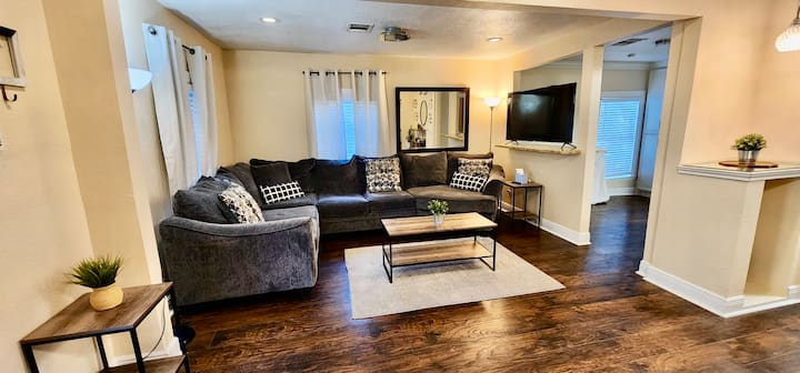 ยินดีต้อนรับสู่การพักผ่อนในฮูสตันที่สมบูรณ์แบบของคุณ! ที่พักที่มีเอกลักษณ์นี้มีพื้นที่นั่งเล่นแยกกัน 2 ห้อง: บ้านหลัก 2 ห้องนอนที่มีเสน่ห์และห้องสวีทส่วนตัวที่มีทางเข้าของตัวเอง ไม่ว่าคุณจะเดินทางกับครอบครัว เพื่อนร่วมงาน หรือเพื่อน ก็เป็นการตั้งค่าที่เหมาะสำหรับการใช้เวลาร่วมกันในขณะที่ยังมีตัวเลือกสำหรับความเป็นส่วนตัวและพื้นที่ส่วนตัว