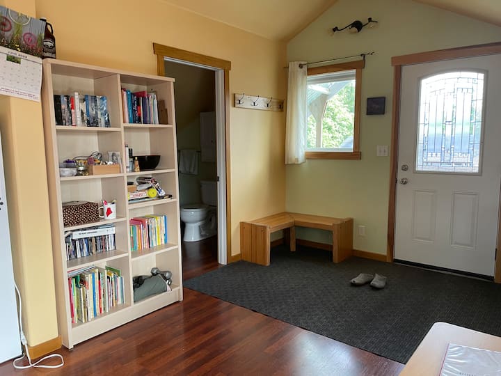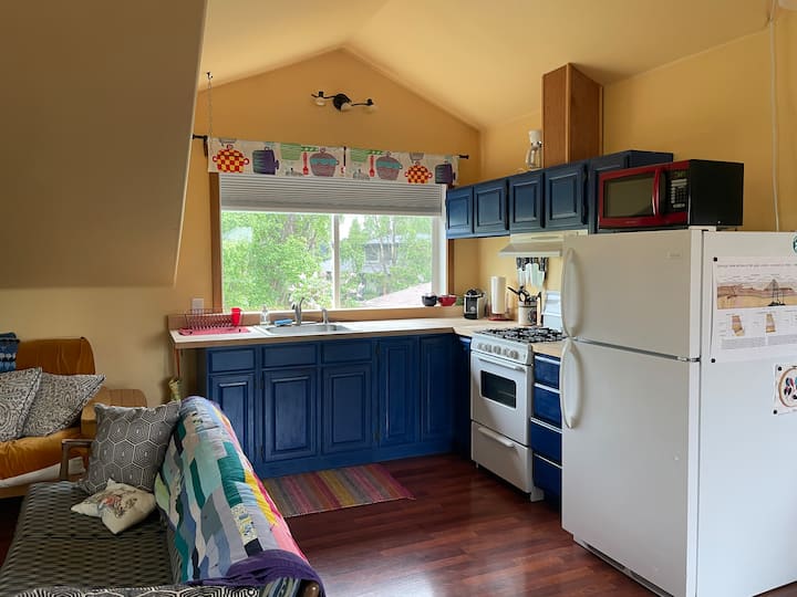 ฉันอาศัยอยู่ในแองเคอเรจกับสามีของฉันอีวาน (ซึ่งเป็นผู้ติดต่อบ่อยเกี่ยวกับอพาร์ทเมนท์) และเด็ก 2 คน เรามีแมว 2 ตัวฮิลด้าและแซลลี่และสุนัขตัวเล็กที่กระตือรือร้นมากชื่อโลกิ 11 Ave Studio อยู่ที่สนามหลังบ้านของเราเหนือโรงรถ