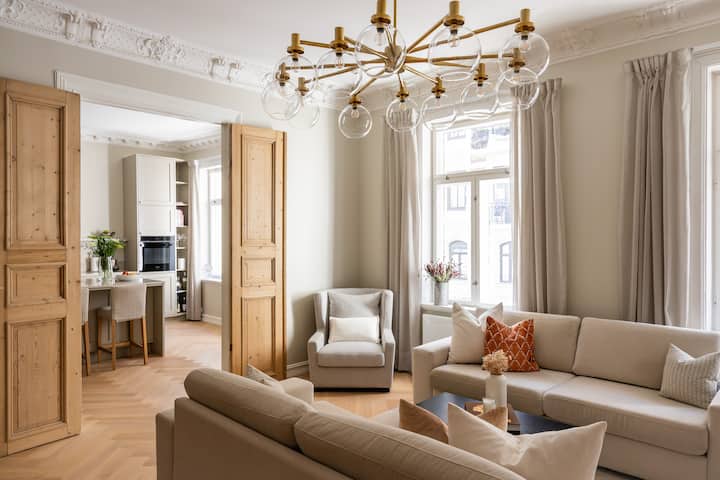 อพาร์ทเมนท์กว้างขวางที่ปรับปรุงใหม่ขนาด 110 ตร.ม. ตั้งอยู่ในทำเลใจกลางเมืองฟร็อกเนอร์ ออสโล!