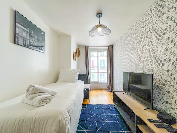 เรายินดีที่จะแจ้งให้คุณทราบว่าไม่ว่าจะมีผู้เข้าพักตามจำนวนที่ระบุไว้ในการจองของคุณเราจะจัดเตรียมผ้าปูที่นอนและผ้าขนหนูไว้ให้จนถึงความจุสูงสุดของอพาร์ทเมนท์ < br >< br > < br > อพาร์ทเมนท์ในปารีสตั้งอยู่บนชั้น 3 โดยไม่มีลิฟต์ < br < br > รายละเอียดอพาร์ทเมนท์: < br > ความจุ: 6 คน < br > 45 ตารางเมตร < br > จำนวนห้องนอน: 2 < br > พื้นที่ส่วนกลาง: เตียงโซฟาคู่ < br > ห้อง 1: เตียงคู่ 140x190 < br > ห้อง 2: 2 เตียงเดี่ยว < br > 1 ห้องน้ำ (ฝักบัว + โถสุขภัณฑ์) < br > < br > < br > บ้านหลังนี้ตั้งอยู่ในย่านครอบครัวใจกลางเมือง ที่พักมีสิ่งอำนวยความสะดวกดังต่อไปนี้: เตารีด อินเทอร์เน็ต (Wi-Fi) ที่เป่าผม เครื่องทำความร้อนไฟฟ้า ในครัวแบบเปิด มีตู้เย็น ไมโครเวฟ เตาอบ จาน/ชุดมีดช้อนส้อม เครื่องชงกาแฟ เครื่องปิ้งขนมปัง และกาต้มน้ำ อพาร์ทเมนท์แห่งนี้ตั้งอยู่ในเขต 10 ย่านนี้ขึ้นชื่อเรื่องบรรยากาศที่มีชีวิตชีวา ฉากการทำอาหารที่หลากหลาย และการผสมผสานสถาปัตยกรรมแบบปารีสดั้งเดิมกับสัมผัสของเมืองสมัยใหม่ คุณจะได้พบกับตลาดริมถนนที่มีชีวิตชีวา ร้านค้าที่มีความหลากหลาย และภูมิทัศน์ทางวัฒนธรรมที่มีชีวิตชีวา