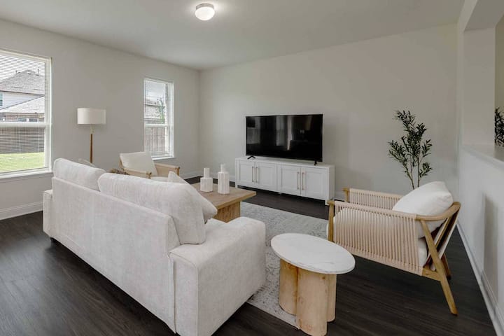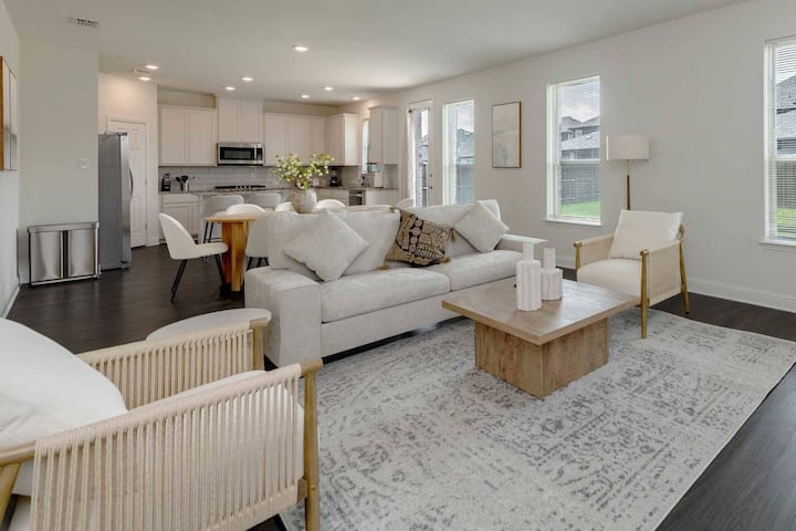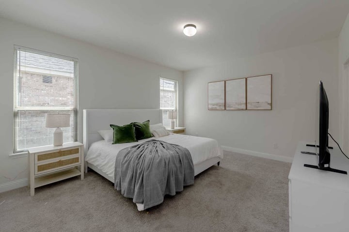 ✨ ยินดีต้อนรับสู่ที่พัก 3 ห้องนอน/2 ห้องน้ำที่มีเสน่ห์ในพรอสเปอร์ ซึ่งเหมาะสำหรับนักเดินทางเพื่อธุรกิจ ครอบครัว และการเข้าพักระยะยาว! พื้นที่ทั้งหมด 1,813 ตร.ฟ. บนชั้นเดียวพร้อมพื้นที่ทำงานที่บ้านโดยเฉพาะ มีสิทธิ์ใช้สระว่ายน้ำของชุมชน โรงจอดรถ 2 คัน เครื่องซักผ้า/เครื่องอบผ้าในห้องพัก และเป็นมิตรกับสัตว์เลี้ยง ไม่กี่นาทีจากฟริสโก พลาโน และแมคคินนีย์ ใกล้ศูนย์กลางธุรกิจ โรงเรียนชั้นนำ และร้านอาหาร ต่ำสุด 30 คืน