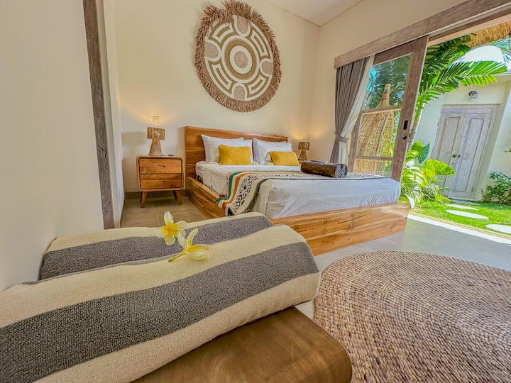 ห้องนอนปรับอากาศตกแต่งอย่างมีรสนิยมด้วยเนื้อสัมผัสธรรมชาติและโทนสีอบอุ่น มีพื้นที่พักผ่อนพร้อมเตียงขนาดควีนไซส์ ผ้าปูที่นอนคุณภาพดี และตู้เสื้อผ้าในตัว ห้องน้ำในตัวสว่างและมีสไตล์พร้อมฝักบัวเรนชาวเวอร์และผ้าขนหนูสะอาดทุกวัน มีการทำความสะอาด 6 วันต่อสัปดาห์เพื่อให้แน่ใจว่าวิลล่าสะอาดและน่าอยู่อยู่เสมอ เพื่อให้คุณสามารถผ่อนคลายและเพลิดเพลินกับการเข้าพักได้อย่างเต็มที่โดยไม่ต้องกังวลใดๆ