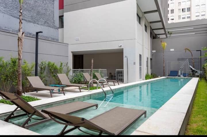Ãmi Studio Faria Lima เหมาะสำหรับผู้ที่เลือกความสบายและความสะดวกสบายในทำเลที่ยอดเยี่ยมในเซาเปาโล คุณอยู่ไม่ไกลจาก Av. ฟาเรีย ลิมา ทำให้คุณเข้าถึงสถานที่ต่างๆ ในเมืองได้ง่าย