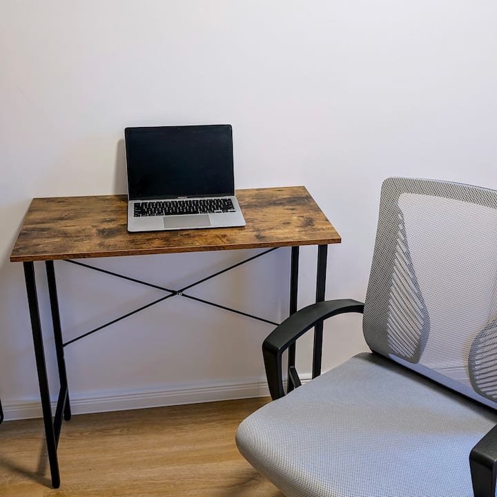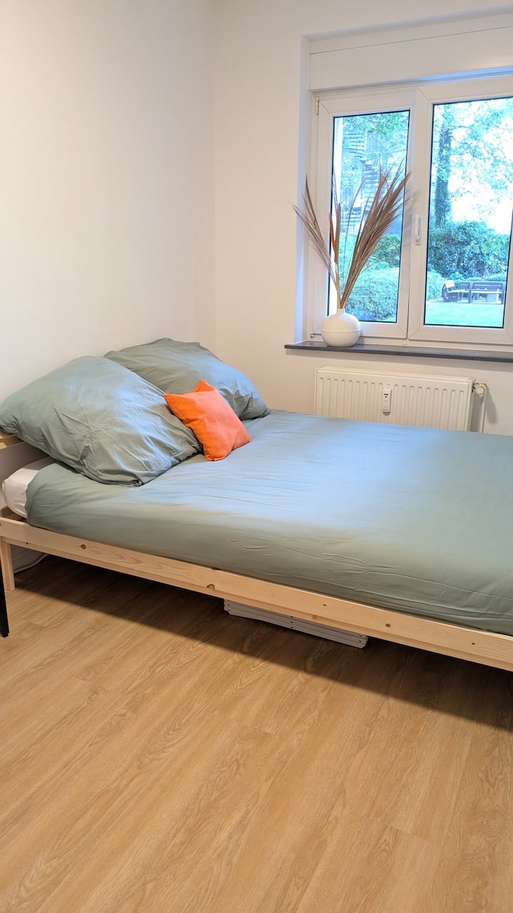 ห้องนอนส่วนตัวสว่างในแฟลตอบอุ่น