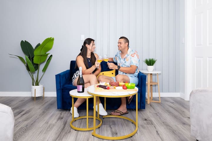 อพาร์ทเมนท์ทันสมัย/ลานส่วนตัว+บาร์บีคิว/เตียงคิงไซส์/หินแข็ง 5 เมตร