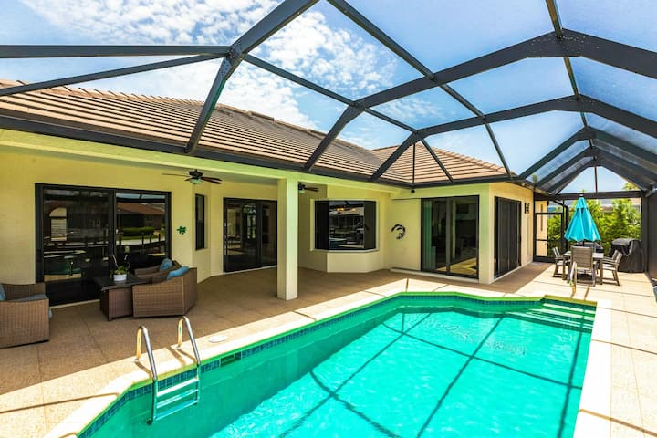 บ้าน 4 ห้องนอนพร้อมสระว่ายน้ำริมน้ำใกล้กับอ่าวและชายหาด