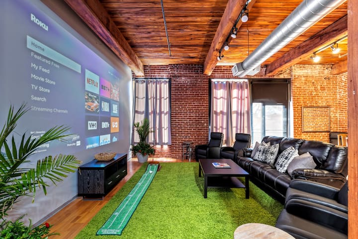 ลอฟท์ใจกลางเมือง + โปรเจคเตอร์ 100 นิ้ว + ระเบียงส่วนตัว