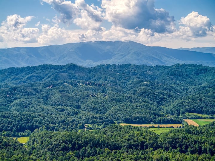 Rooms with a View ซ่อนตัวอยู่บนยอดเขาในพื้นที่หรูหราของ The Summit บนภูเขาบลัฟ เป็นมากกว่าเคบิน มันคือเรื่องราวที่รอให้เขียน ตั้งแต่ขึ้นมาถึง คุณจะได้เห็นทิวทัศน์อันกว้างใหญ่ของเทือกเขาสโมคกี้ที่ทอดยาวอยู่ตรงหน้า เป็นฉากสำหรับการพักผ่อนที่น่าจดจำอย่างแท้จริง ถนนที่ปูด้วยยางม้วนไปอย่างราบรื่นจนถึงที่พัก ต้อนรับทั้งรถจักรยานยนต์และรถเทรลเลอร์ได้อย่างง่ายดาย (แม้ว่าจะไม่อนุญาตให้ใช้รถเทรลเลอร์เชิงพาณิชย์ในรีสอร์ท)