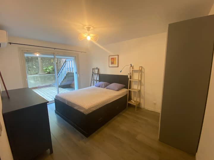 ชั้นล่างของวิลล่าที่มีเสน่ห์และเงียบสงบ