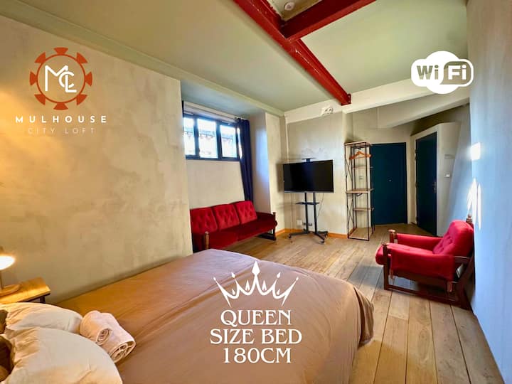 สไตล์ลอฟท์ เตียงควีนไซส์ และจอภาพขนาดใหญ่