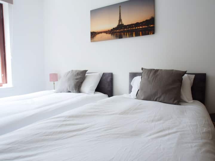 ก้าวเข้าสู่แฟลตที่สว่างไสวและน่าอยู่ ซึ่งเพิ่งได้รับการปรับปรุงใหม่โดยคำนึงถึงความสะดวกสบายและมีสไตล์ อพาร์ทเมนท์มีห้องนอนสัดส่วนดี 2 ห้อง ห้องหนึ่งมีเตียงคู่ที่อบอุ่นและอีกห้องมีเตียงเดี่ยว 2 เตียง เหมาะสำหรับครอบครัว เพื่อน หรือเพื่อนร่วมงานที่เดินทางมาด้วยกัน