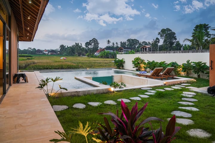หลบไปพักผ่อนในสถานที่พักผ่อนที่ไม่มีใครเทียบได้ ล้อมรอบด้วยนาข้าวสีเขียวมรกตที่ Villa Aurelia วิลล่าหลังนี้มี 2 ห้องนอนกว้างขวางและได้รับการออกแบบอย่างประณีต ซึ่งนิยามใหม่ของการใช้ชีวิตที่หรูหราในอูบุด