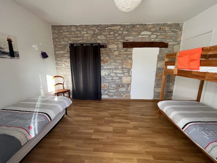 โรงเรียนเก่าตั้งแต่ปี 1885 สถานที่เป็นกันเอง ผู้เข้าพักหลายคนพร้อมกันด้วยห้องขนาดใหญ่ 1 ห้องสำหรับการรวมญาติหรือกลุ่มเพื่อนของคุณ ห้องเด็กเล่นสำหรับเด็ก สนามปิแตงก์ สวน เตาบาร์บีคิว