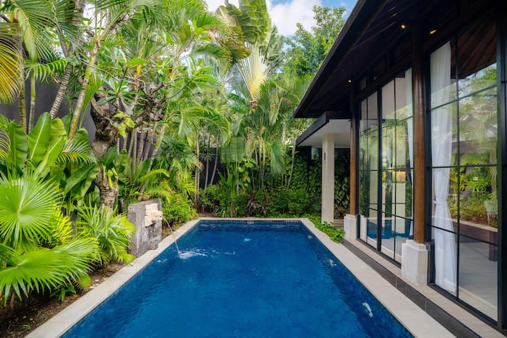วิลล่าหนึ่งห้องนอนที่มีสไตล์นี้ได้รับการออกแบบอย่างพิถีพิถันเพื่อความสะดวกสบายและการพักผ่อน ก้าวเข้ามาข้างในเพื่อค้นหาสระว่ายน้ำส่วนตัวที่มีสวนเขตร้อนเขียวชอุ่มและเก้าอี้อาบแดด ซึ่งเป็นสถานที่ที่เหมาะสำหรับการพักผ่อนและแช่ตัวในแสงแดดของบาหลี เพื่อความสบายใจยิ่งขึ้น คอมเพล็กซ์มีการรักษาความปลอดภัยด้วยเจ้าหน้าที่รักษาความปลอดภัยโดยเฉพาะ
