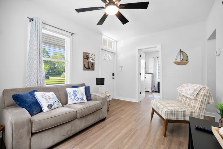 หลบหนีไปพักผ่อนที่ชายฝั่งส่วนตัวของคุณเองใจกลางเมืองวิลมิงตัน! บังกะโล 1 ห้องนอนที่มีเสน่ห์แห่งนี้ได้รับการปรับปรุงใหม่ทั้งหมดด้วยการตกแต่งที่สดใหม่และทันสมัยและการตกแต่งแบบชายฝั่งที่น่าดึงดูดใจ ทำให้เกิดพื้นที่ที่สะอาดและผ่อนคลายเพื่อการพักผ่อน ตั้งอยู่ใกล้ใจกลางเมืองและย่านริเวอร์ดิสตริกท์ที่มีชีวิตชีวา คุณจะอยู่ห่างจากไรท์สวิลล์บีช ริเวอร์วอล์คที่สวยงาม สถานที่ท่องเที่ยวทางประวัติศาสตร์ และร้านอาหาร โรงเบียร์ และร้านบูติกที่ยอดเยี่ยมเพียงไม่กี่นาที