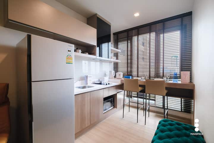กำลังมองหาอพาร์ทเมนท์ทันสมัยชั้นสูงใจกลางย่านธุรกิจของกรุงเทพมหานครอยู่หรือเปล่า บ้าน 1 ห้องนอนที่มีสไตล์นี้เหมาะสำหรับนักเดินทางคนเดียว คู่รอบครัว หรือดิจิตอลโนแมดที่ต้องการพื้นที่ที่สะดวกสบายและเชื่อมต่อกันดีสำหรับการเข้าพักทั้งระยะสั้นและระยะยาว