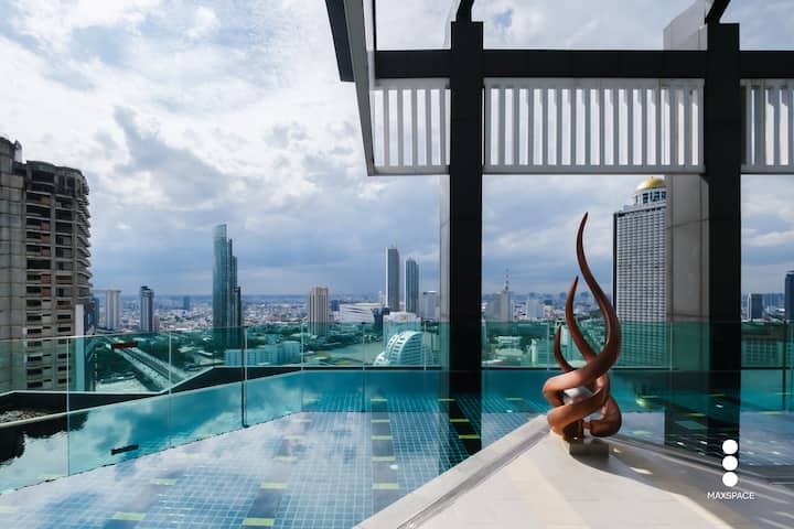 พักในห้อง 1 ห้องนอนขนาด 40 ตร.ม. บนชั้น 28 พร้อมวิวเมืองที่สวยงาม ตั้งอยู่ในสาทร ซึ่งเป็นย่านธุรกิจของกรุงเทพฯ เดินเพียง 6 นาทีถึงบีทีเอสสะพานตากสินและท่าเรือ เพื่อการเดินทางไปไอคอนสยามได้ง่าย รายล้อมไปด้วยคาเฟ่ ร้านอาหาร แกลเลอรี่ศิลปะ และห้างสรรพสินค้า