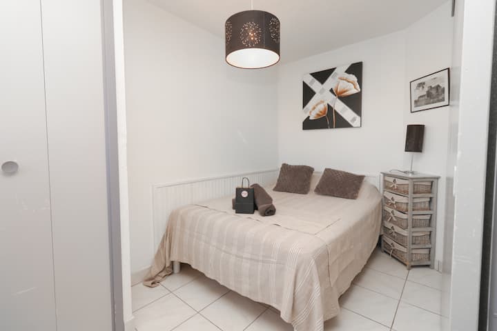 ที่พักสำหรับสองคนที่เหมาะสำหรับการพักผ่อน ชายหาด และสิ่งอำนวยความสะดวกอยู่ในระยะเดินถึงได้