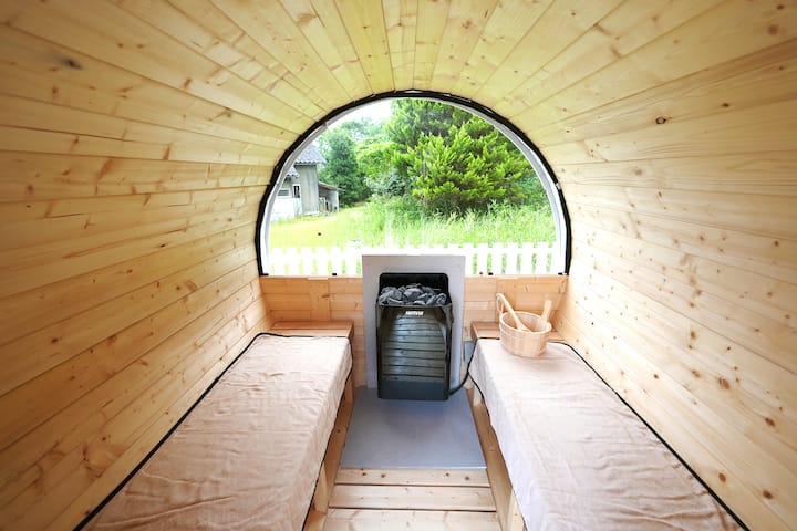 ผ่อนคลายไปกับที่อาบน้ำฝักบัวกลางแจ้งและซาวน่า