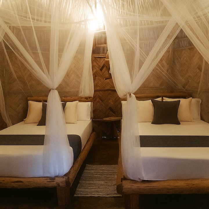 เคบินธรรมชาติ 2 หลัง + Wi-Fi + จากุซซี่ + เดินไปหาด + ปาโลมิโน