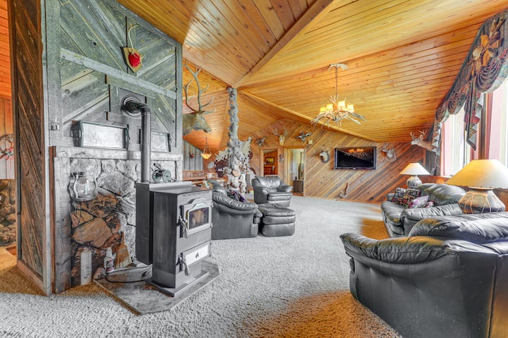 ที่พักผ่อนสไตล์ชนบทรอคุณมาผจญภัยอยู่ ที่พักสไตล์ชนบทในดูบัวส์ รัฐไวโอมิง มีวิวภูเขาสวยงามล้อมรอบ เคบินให้เช่าสำหรับวันหยุดพักผ่อนแห่งนี้มีห้องนอน 5 ห้อง ห้องน้ำ 3 ห้อง พื้นที่นั่งเล่น 2 ห้อง และพื้นที่ 4,200 ตารางฟุต มีพื้นที่กว้างขวางสำหรับทุกคน หลังจากไปเที่ยวอุทยานแห่งชาติเยลโลว์สโตนหรือแหล่งศิลปะหินสลักของรัฐเลเจนด์ร็อคมาแล้ว ก็เตรียมอาหารในครัวที่มีอุปกรณ์ครบครันและรับประทานอาหารนอกบ้านบนดาดฟ้ารอบทิศ