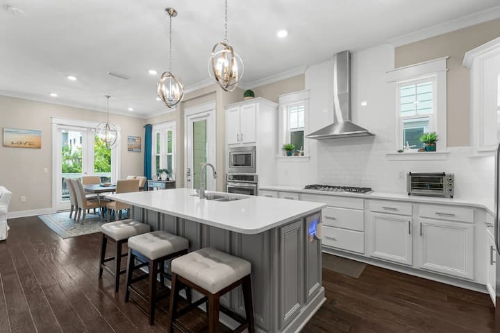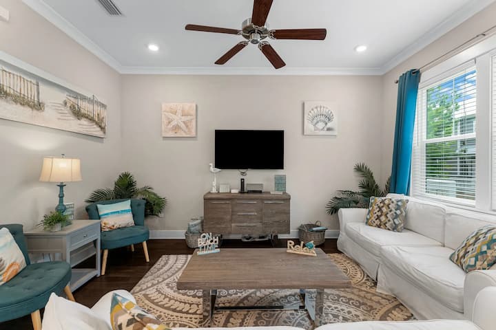 ยินดีต้อนรับสู่ Koastal Kisses! สัมผัสความหรูหราของ 30A ในทาวน์โฮมสุดงดงาม 3 ห้องนอน 2.5 ห้องน้ำในชุมชนพรอมิเนนท์นอร์ทบีช พักผ่อนริมสระว่ายน้ำ รถกอล์ฟไปชายหาด หรือเดินไป THE BIG CHILL ห้องครัวของเรามีอุปกรณ์ครบครันสำหรับทำอาหารสำหรับครอบครัวและมีพื้นที่กว้างขวางสำหรับการรวมตัวในพื้นที่เปิดโล่งของเรา บ้านของเราสามารถนอนได้อย่างสบาย 10 คนและตั้งอยู่ใกล้กับทุกอย่างที่ 30A มีให้!