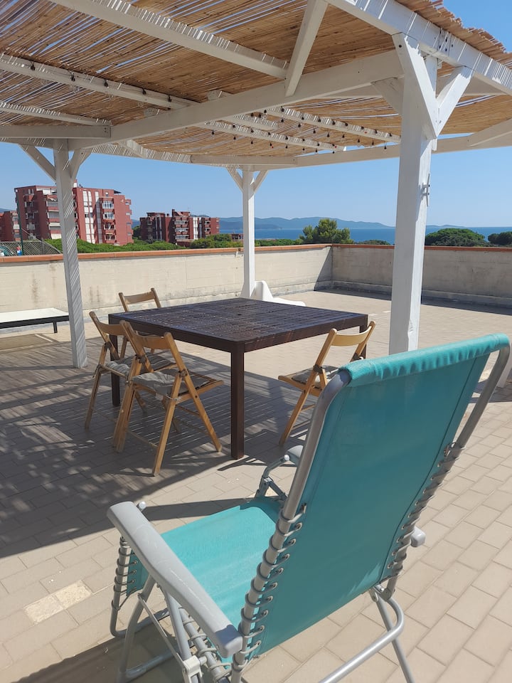 - บ้านพักตากอากาศที่มีที่นั่งกลางแจ้งใน Follonica