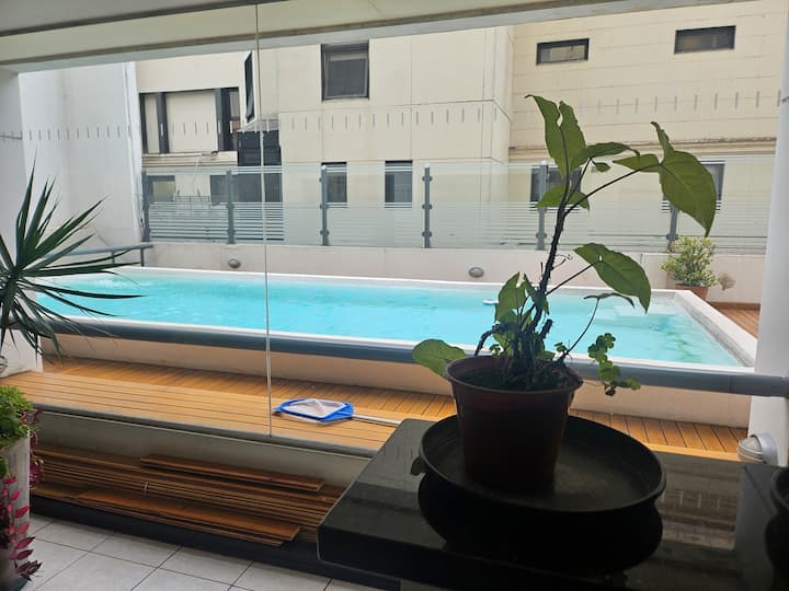 นี่เป็นหนึ่งในที่พักไม่กี่แห่งของย่านนี้ที่มีสระว่ายน้ำ
