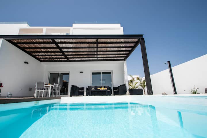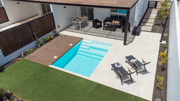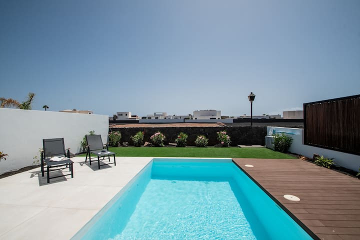 ค้นพบเสน่ห์ของวิลล่ากึ่งส่วนตัวแห่งนี้ที่ตั้งอยู่บนที่ดินหัวมุมที่กว้างขวางนำเสนอการผสมผสานที่ลงตัวของความหรูหราและการพักผ่อน วิลล่าแห่งนี้ตั้งอยู่ในพื้นที่ Las Coloradas ใกล้กับชายหาด Papagayo ที่สวยงามและ Marina Rubicón ก้าวเข้าสู่พื้นที่นั่งเล่นห้องรับประทานอาหารและห้องครัวแบบเปิดโล่งออกแบบมาอย่างสวยงามพร้อมสิ่งอำนวยความสะดวกที่ทันสมัยเครื่องปรับอากาศและสมาร์ททีวีเพื่อความสะดวกสบายสูงสุด ประตูบานเลื่อนขนาดใหญ่เปิดออกสู่ระเบียงที่มีแสงแดดส่องถึงพร้อมห้องรับประทานอาหารกลางแจ้งเฟอร์นิเจอร์เลานจ์และเตียงอาบแดด 2 เตียงข้างสระว่ายน้ำส่วนตัวของคุณ ติดกับวิลล่ามีสระว่ายน้ำส่วนกลางขนาดใหญ่รอคุณอยู่เหมาะสำหรับการว่ายน้ำที่ยาวนานและสดชื่นในบรรยากาศที่เงียบสงบ