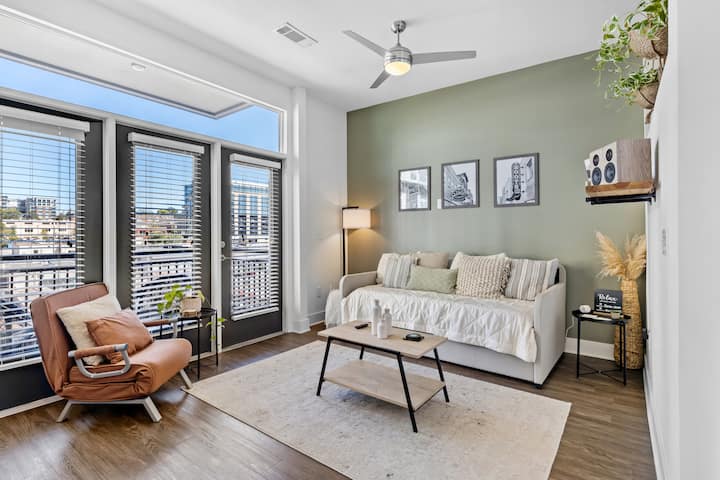 แสงยามเช้าที่อ่อนโยนลอยผ่านอพาร์ทเมนท์ SoBro แห่งนี้ ชวนให้เริ่มต้นอย่างช้าๆ ก่อนที่จะก้าวเข้าสู่จังหวะที่มีชีวิตชีวาของแนชวิลล์ คุณอาจหยุดพักที่ลานบ้านหรือระเบียงเพื่อสูดอากาศหนาวที่สดชื่น หรือพักผ่อนในบ้านพร้อมฟังเพลงหรืออ่านหนังสือขณะที่เสียงเมืองดังอยู่นอกกำแพง ระหว่างการออกไปเที่ยวในตัวเมือง ที่พักแห่งนี้มีพื้นที่ให้คุณได้ผ่อนคลาย เติมพลัง และพักผ่อนตามสบาย