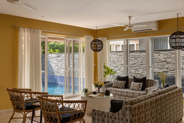 วิลล่า 4 ห้องนอนพร้อมสระว่ายน้ำส่วนตัวแห่งนี้ตั้งอยู่ใจกลางย่านปาร์ตี้ของอันจูนาและวากาเตอร์ และมีทุกสิ่งที่คุณต้องการในบ้านพักตากอากาศสุดหรูที่อยู่ห่างจากชายหาดเพียงไม่กี่นาที