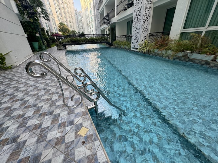 นี่เป็นหนึ่งในที่พักไม่กี่แห่งของย่านนี้ที่มีสระว่ายน้ำ