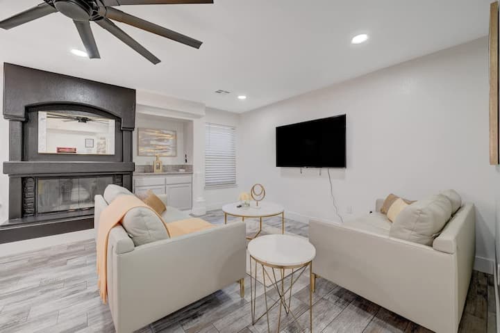 หลบหนีไปยังโอเอซิสในฝันในสถานที่พักผ่อน Airbnb 4 ห้องนอนที่รองรับผู้เข้าพักได้สูงสุด 10 คน ดื่มด่ำกับความหรูหราด้วยสระว่ายน้ำส่วนตัวเหมาะสำหรับช่วงบ่ายที่ขี้เกียจ ผ่อนคลายในห้องเล่นเกมพร้อมโต๊ะพูลและเกมอาเขตหรือรวมตัวกันในห้องครัวกว้างขวางสำหรับการผจญภัยด้านอาหาร ดื่มด่ำกับเสน่ห์ของห้องนอนที่อบอุ่นและดื่มด่ำกับความเงียบสงบของสวนหลังบ้านที่เขียวชอุ่ม การพักผ่อนในอุดมคติของคุณรออยู่นำเสนอการผสมผสานที่ลงตัวระหว่างการพักผ่อนและความบันเทิง