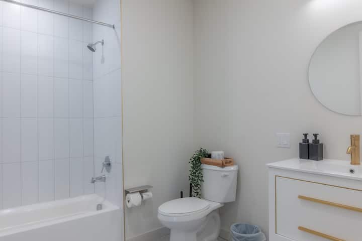 ห้องน้ำที่น่ารักนี้มีอุปกรณ์อาบน้ำที่จำเป็นทั้งหมด ดังนั้นคุณจึงไม่ต้องเตรียมของมากเกินไป