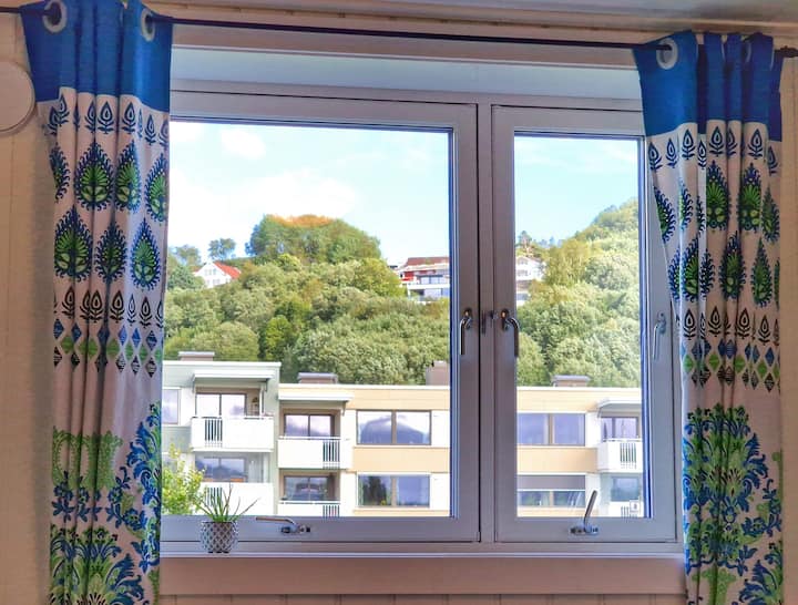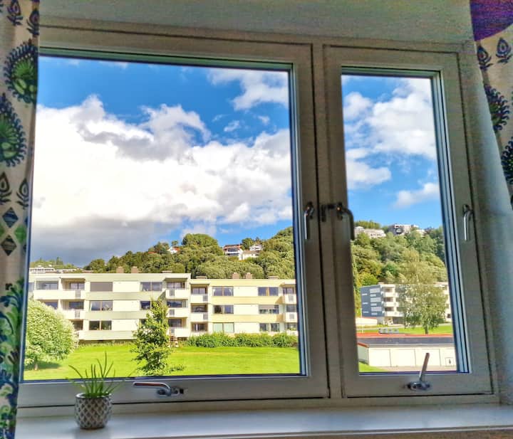 ห้องนอนส่วนตัวในอพาร์ทเมนท์ที่มีวิวภูเขา