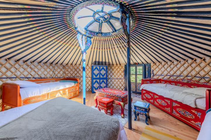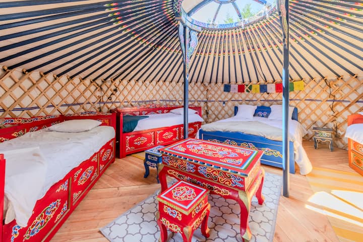 ดื่มด่ำประสบการณ์ที่ไม่เหมือนใครในใจกลางธรรมชาติ เข้าพักในกระโจมทรงกลมสไตล์มองโกเลียแท้ๆ ที่ตกแต่งด้วยเฟอร์นิเจอร์สีสันสดใส แล้วปล่อยให้เสียงนกร้องทำให้คุณหลับสนิท รับประกันความสงบและความสงบ รองรับผู้เข้าพักได้สูงสุด 5 คน เหมาะสำหรับการพักผ่อน แชร์ช่วงเวลากับครอบครัว หรือเข้าพักที่ไม่ธรรมดาใกล้เส้นทางและทิวทัศน์ เพลิดเพลินกับสวนและพื้นที่กลางแจ้งเพื่อช่วงเวลาผ่อนคลายกลางแจ้ง