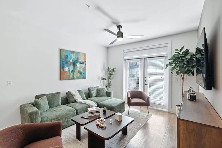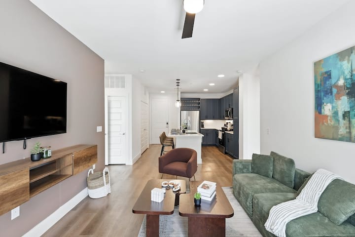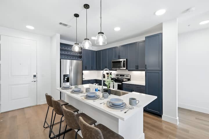 ยินดีต้อนรับสู่คอนโด 2 ห้องนอน 2 ห้องน้ำที่น่าอยู่ของเรา เพลิดเพลินกับความหรูหราทันสมัยที่น่าทึ่งในใจกลางฟอร์ตเวิร์ท พื้นที่นั่งเล่นและห้องรับประทานอาหารแบบเปิดโล่งมีไฟ LED ทันสมัยและเฟอร์นิเจอร์ร่วมสมัย พักผ่อนในห้องนอนเพื่อสัมผัสโอเอซิสที่แยกต่างหากและทิวทัศน์ยามค่ำคืนที่น่าหลงใหล แสงธรรมชาติสาดส่องผ่านหน้าต่างกระจกช่วยเพิ่มบรรยากาศที่อบอุ่นของพื้นไม้และการตกแต่ง